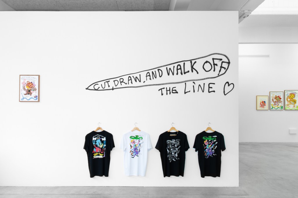 Adrien Vermont présente une première exposition d’ampleur de son travail artistique. Cut, draw and walk off the line réunit un ensemble d’œuvres anciennes et inédites qui manifestent une réflexion axée vers le trait, la ligne et la couleur. Le dessin est au centre d’une pratique qui allie une pensée de la reproductibilité des images et une philosophie politique énoncée via des figures animales. Avec humour et transgression, l’artiste vise à déconstruire des récits fondateurs.