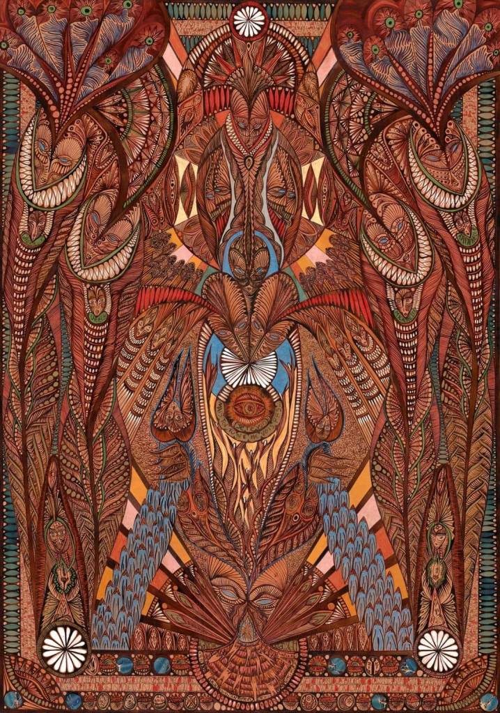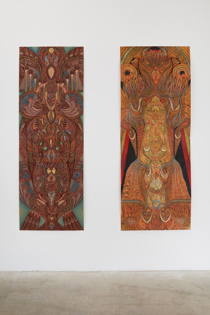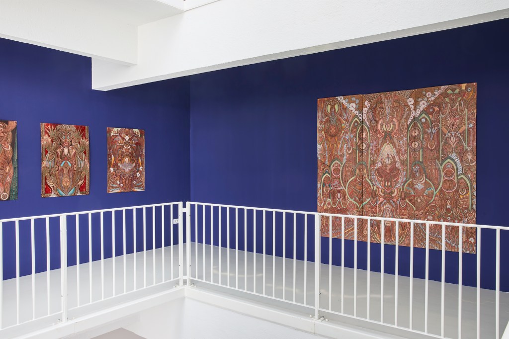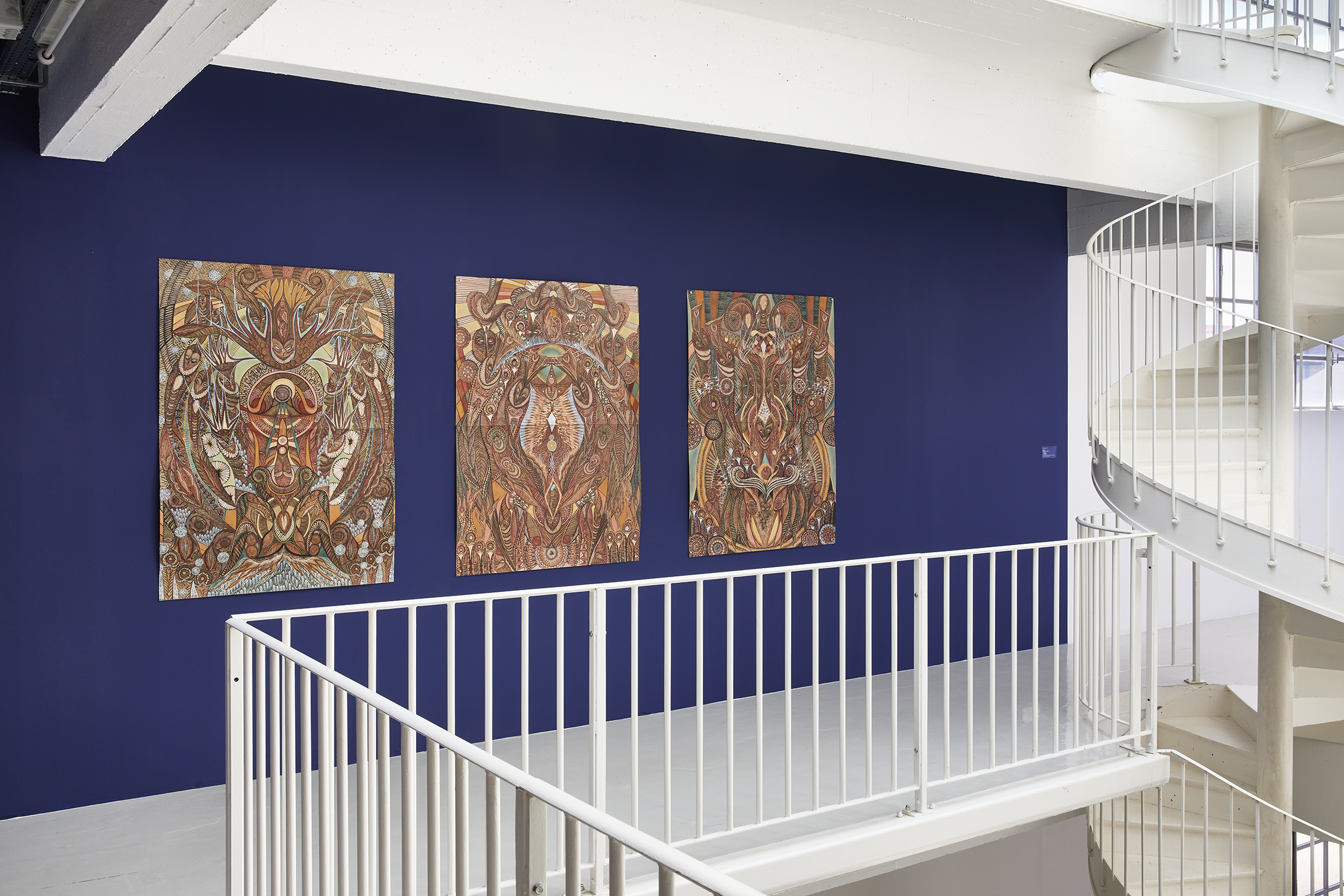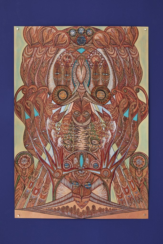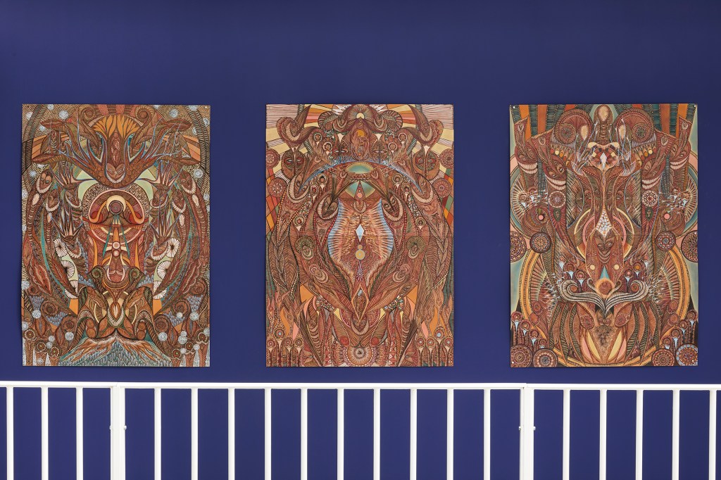 Margot écrit en 2023 : « Je suis à cheval entre deux mondes. Le mien et le vôtre. C’est une question d’équilibre. Ce que m’apporte ma création n’a pas vraiment d’importance, je le fais car je dois le faire. Je dois vous apporter ça. Ce que vous voyez à travers ma création (mes yeux, ma main, mon esprit), c’est la magie ancestrale que nous avons oubliée à force d’explications. Cette magie parle aux cœurs et non à la raison. Elle EST. Elle existe et existera bien après ma mort. » Les dessins de Margot sont à envisager comme des portes que l’artiste ouvre vers des espaces mentaux aussi structurés que libres. Face aux œuvres nous nous retrouvons au seuil de territoires interdépendants : l’obscurité et la lumière, le chaos et l’ordre (la symétrie en est l’outil), le réel et le surréel, le terrestre et l’extraterrestre, l’humain et la chimère, l’utopie et la dystopie. Margot fusionne et architecture les paradoxes pour générer un univers nourri d’une pensée du commun et de l’interdépendance. Les titres de ses œuvres sont d’ailleurs issus de l’espéranto ou bien d’une langue intime qu’elle fabrique au fil des œuvres. Par la ligne, la couleur, la lumière et le mot, Margot relie les existences pour donner forme à un tout profond et puissant.