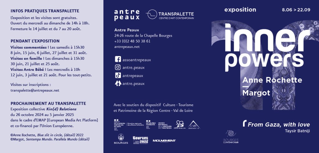 Crédits photo / Vue de l’exposition Inner powers (Margot, Anne Rochette, Taysir Batniji). Antre Peaux, Bourges. 8 juin au 22 septembre 2024. ©Jean-Christophe Lett.