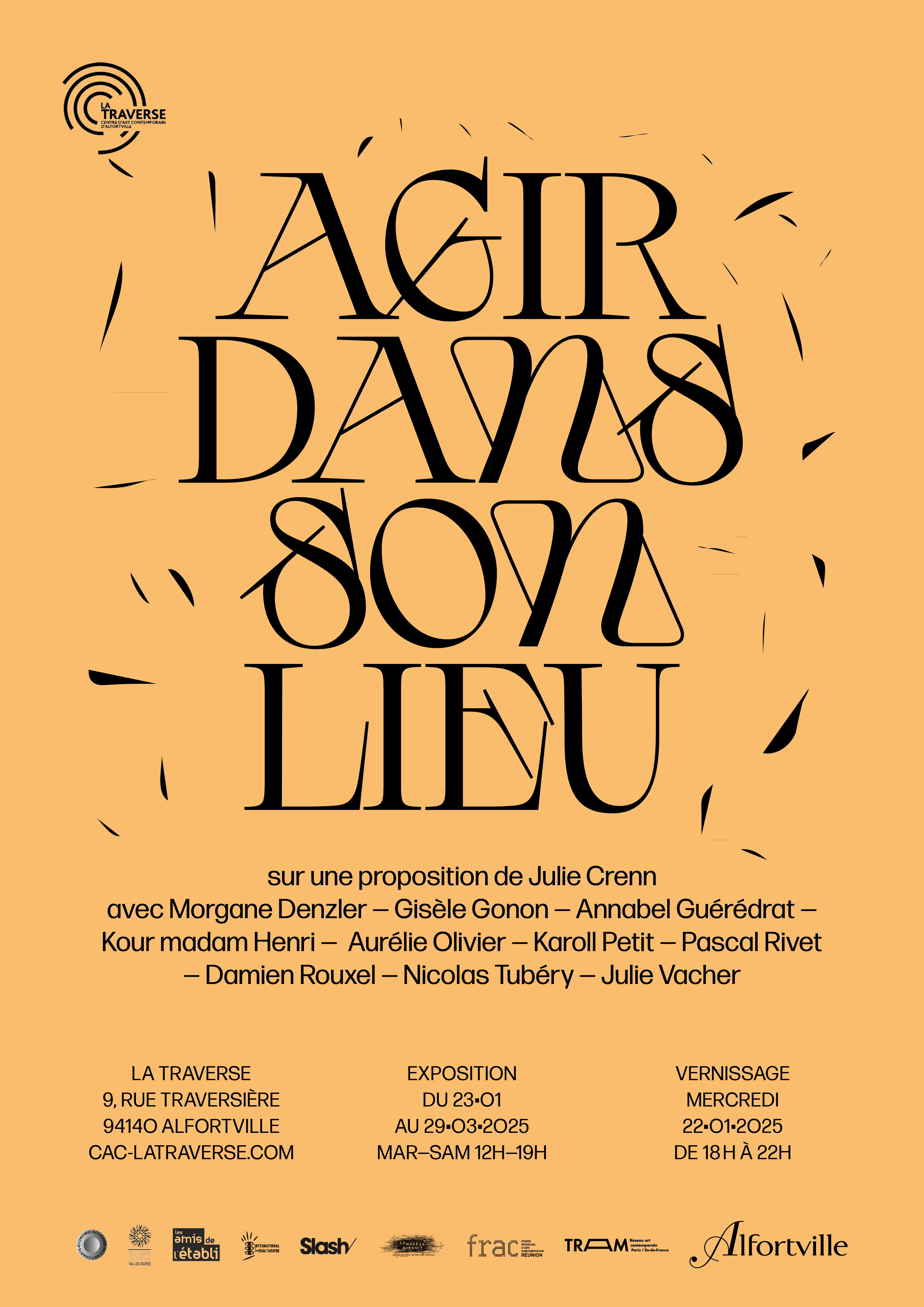 Depuis 2016, Agir dans son lieu est un projet au long cours. Un cycle de recherches, de résidences et d’expositions dédié aux liens qui existent entre les artistes et les paysan.nes. Après la Galerie Duchamp à Yvetot en Normandie (2017), Les ateliers des Arques dans le Lot (2018), le Transpalette à Bourges (2021), La Galerie du Dourven – La Coopérative à Locquémeau (2024), Agir dans son lieu s’installe à La Traverse en 2025. L’exposition propose une réflexion à voix multiples et situées à partir des mondes paysans.