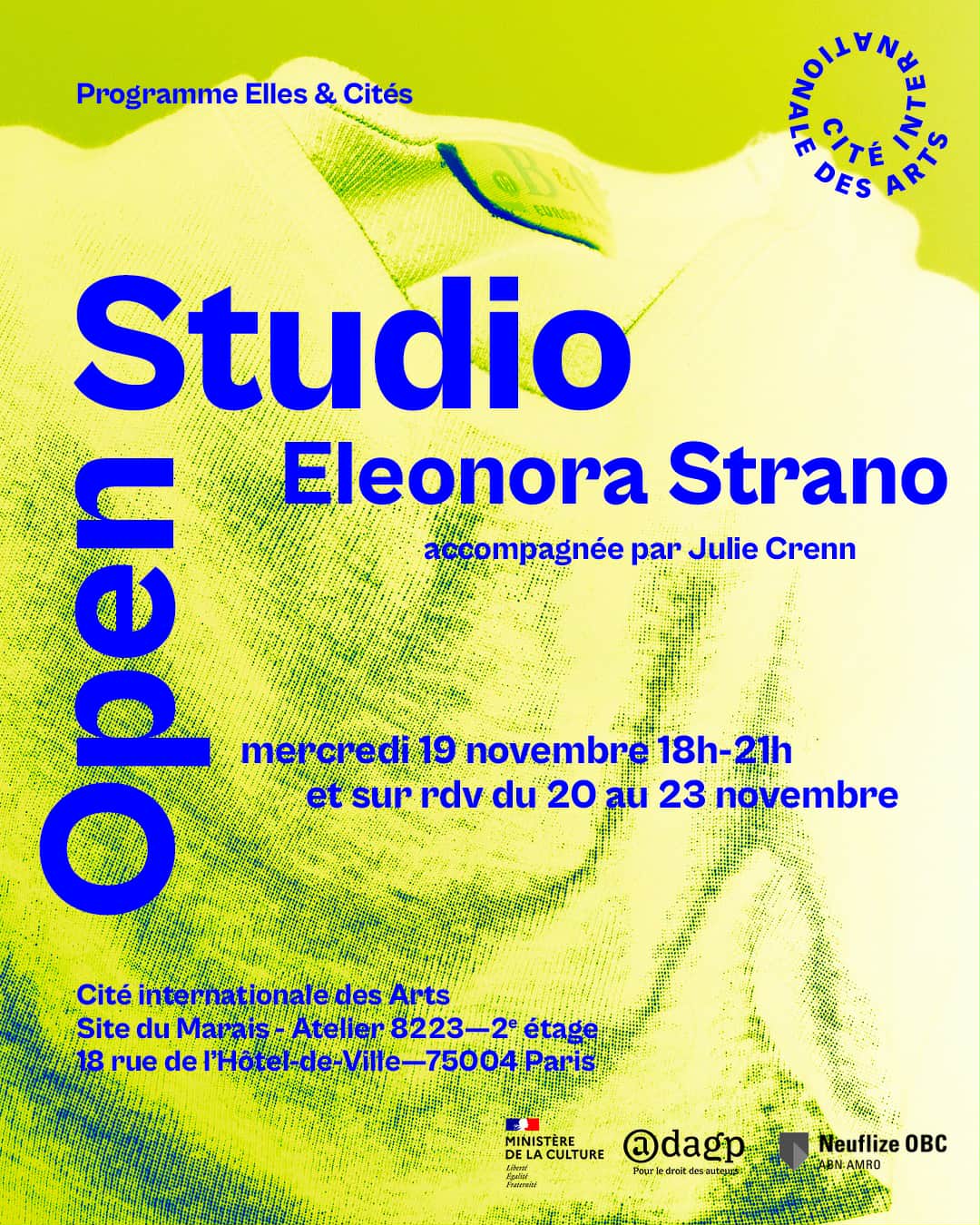 La résidence Elles & Cité – créée à l’initiative du ministère de la Culture et de la Cité internationale des arts, avec le soutien de la Fondation d’entreprise Neuflize OBC et de l’ADAGP – permet à six artistes lauréates en milieu de carrière de bénéficier pendant trois mois d’une résidence artistique à la Cité internationale des arts afin de leur offrir un nouveau tremplin professionnel.