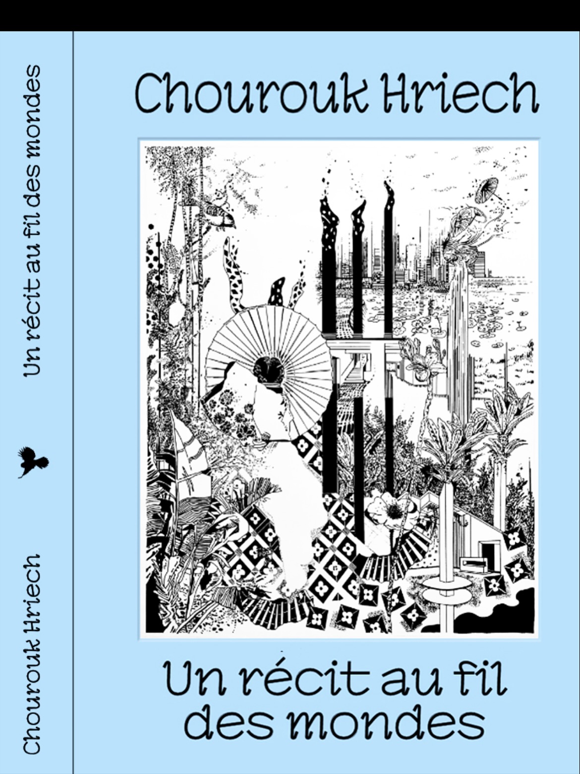 Chourouk Hriech fabrique un univers fait de lignes, de traits, de vides et de pleins, de noir, de blanc, parfois de bleu, où le vivant est célébré. Un univers artistique au sein duquel elle accorde une large place aux paysages où l’activité humaine est clairement installée. Avec un immense travail d’observation et de restitution des formes architecturales, elle dessine des constructions humaines qui sont des marqueurs de temps et de culture : ponts, grues, immeubles, porte-containers, maisons, fenêtres, miroirs, écrans, etc. Ces dernières coexistent avec la montagne, la mer, la rivière, la forêt, les nuages, la jungle ou la vallée. L’artiste n’exclut pas la présence humaine, bien au contraire, elle est représentée à différents endroits de son œuvre. Elle travaille à partir d’écosystèmes où les liens, les relations et, par-dessus tout, les interdépendances sont visibilisées. En ce sens, elle nous invite à une plongée graphique, formelle, sensible et sensorielle dans une œuvre guidée par la nécessité de relations et d’alliances. Une œuvre motivée aussi par le mouvement, par la métamorphose et par la coexistence.